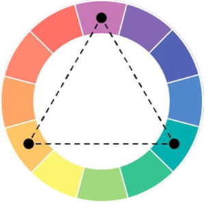 A triadic color combination is a combination that uses three colors. They are equidistant on the color circle, making the shape of a triangle. Using this type of color combination can create feelings of peace and harmony for the viewer of your design.