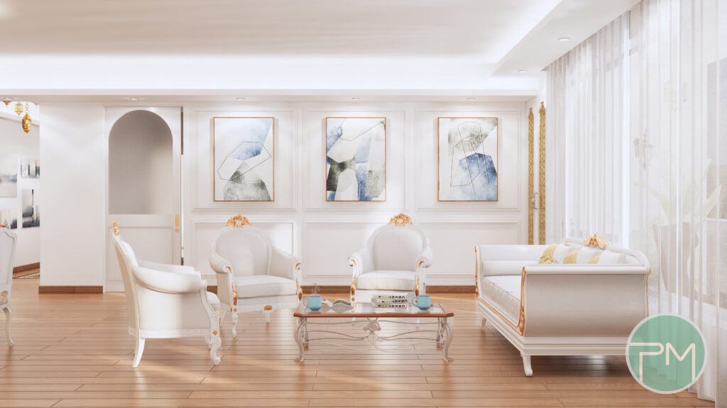 - Strong emphasis on symmetry and balance. Furniture arrangements are often mirrored or evenly balanced to create a sense of order and harmony.